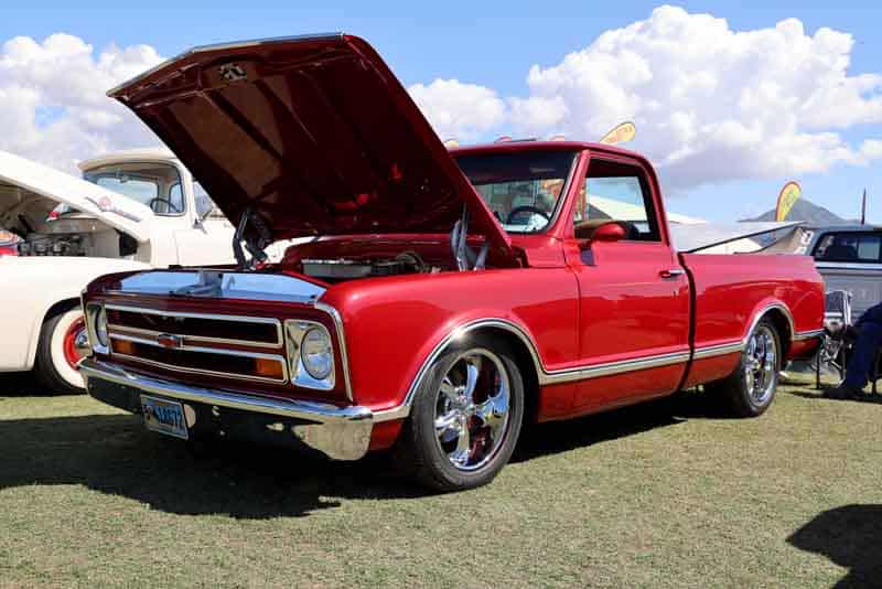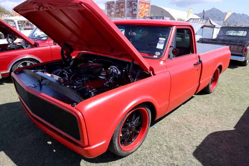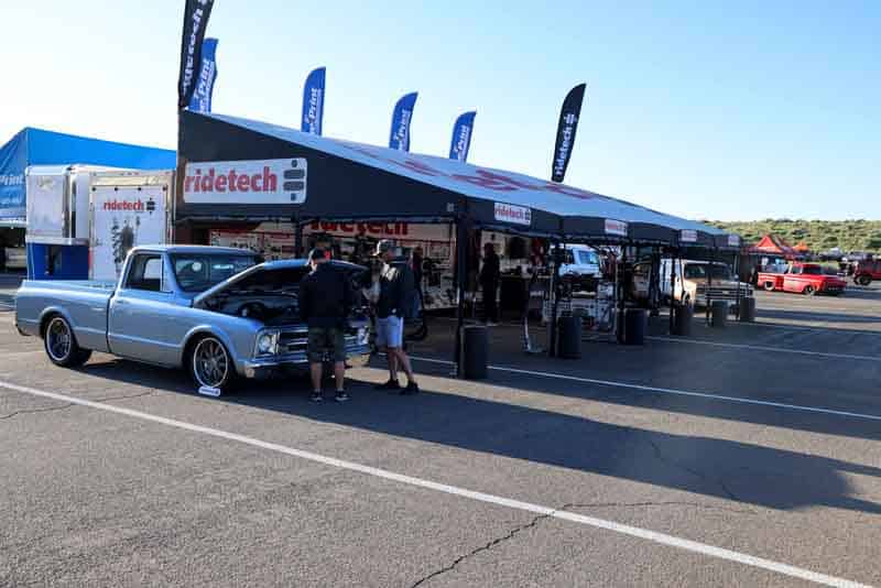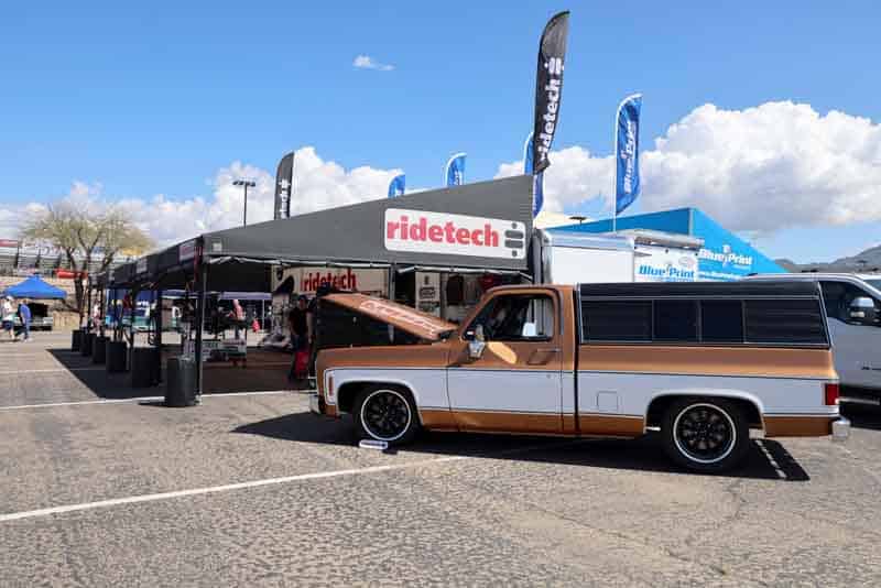 Darin stopped by with a question, and we didn’t let him leave… We offered to display his gorgeous Ridetech equipped 1967 C10 in the booth.